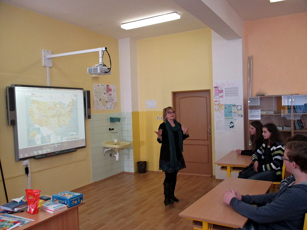Další příležitost, jak zatraktivnit výuku, tentokrát hodiny angličtiny, využila Jana Doležalová pro žáky pátých až devátých ročníků v těchto dnech. V hodinách přivítali paní Nechi Fullerton.