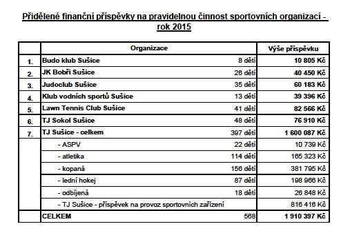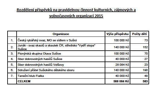 (celé znění pravidel pro přidělování prostředkůorganizacím činným v oblasti kultury, sportu, volného času a vzdělávání : www.mestosusice.cz)