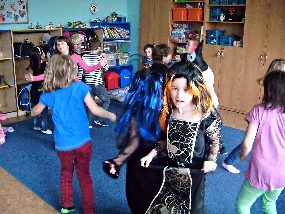 Aby se dohromady jednotlivé ‚sabaty‘ nepomotaly, vyřešily to kouzelnické bytosti z Pampelišky (ŠD při ZŠ Lerchova ul.) dobře – každé oddělení si vymyslelo svůj program, vyzdobilo prostředí a pak už oslavám a veselení nic nebránilo. Některé ze zúčastněných posloužily coby rekvizity, ale nebojte se, kolegyně je opět vrátily do lidské podoby, a tak mohli být náhodní kolemjdoucí (jdoucí kolem oddělení Heleny Pojarové Tesařové), například svědky tance s čarodějnicí mezi čely, tanečních kreací odvrácených tváří, fyzicky náročného tance „podřepák“ i tanečního maratonu.