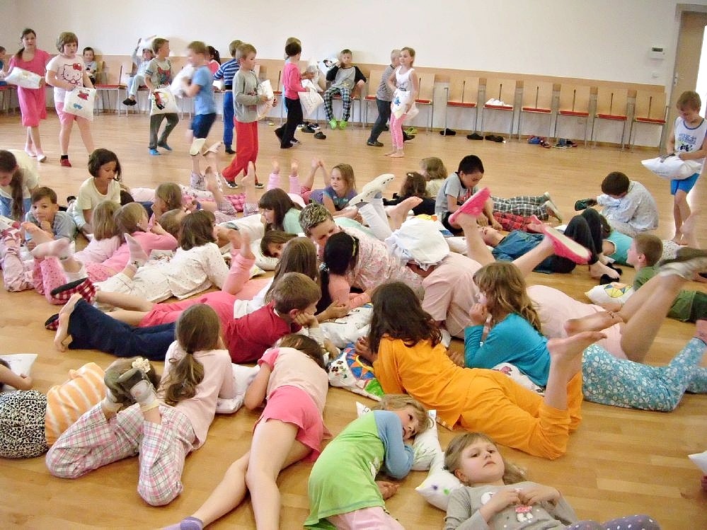 „Den dětí jsme oslavili velkou pyžamovou párty, kde se kromě tanečních kreací s polštářky i soutěžilo. Každý se mohl předvést ve střelbě na pyžamové na pyžamové kuželky, v prohazování polštářku obručí nebo chůzí s polštářem na hlavě. Pyžamovým tunelem se (tam i zpět) dalo prolézt pod všemi 130 dětmi, které se veselého odpoledne účastnily. Dovádivá hudba „pyžámka“ nenechala v klidu, a řádění v nočních úborech jsme zakončili pořádnou polštářovou bitvou.