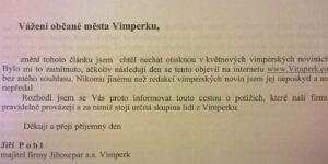 29. května jsme zveřejnili text vyjádření majitele společnosti Jihosepar, a. s. Jiřího Pobla: …“Majitel společnosti Jihosepar a. s, Jiří Pobl se otevřeně vyjadřuje k