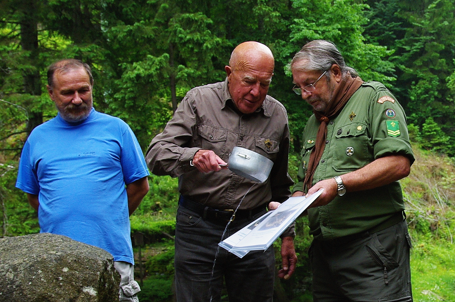 A právě u soutoku obou těchto řek se ve středu 10. června sešlo téměř 50 bývalých i současných skautů a jejich příznivců na slavnostním křtu knihy Vladimíra Černého Skautské století na Sušicku. Za kmotry byli vybráni lidé, které bez nadsázky skauting poznamenal na celý život. Emil Kintzl – skaut a velký šumavský patriot, Jan Vavřička – člen střediska Jestřáb Pačejov a skautský historik, Milan Miškovský – člen legendárního roverského kmene Dakota z Prahy a Zdeněk Prančl – současný náčelník střediska Vydří stopa Sušice.