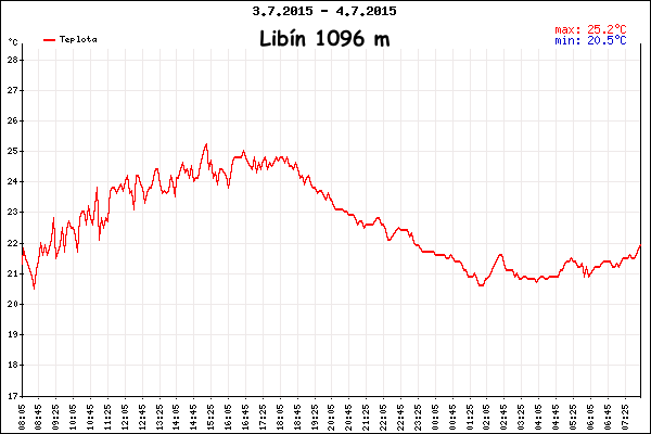 Na třech šumavských meteostanicích byla z 3. na 4. července 2015 zaznamenána tropická noc, tedy noc kdy minimální teplota neklesne pod hranici +20°C.