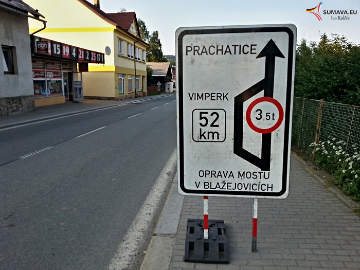 Pro vozidla nad 3,5 t je stanovena objízdná trasa přes Vimperk dlouhá 62 km. Už v prvních dnech uzavírky však několik kamionů zákaz ignorovalo a řidiči se vydali na úzkou objízdnou trasu, která není pro tyto vozy naproto uzpůsobena. Takovým řidičům hrozí bloková pokuta ve výši až 2 000 Kč.
