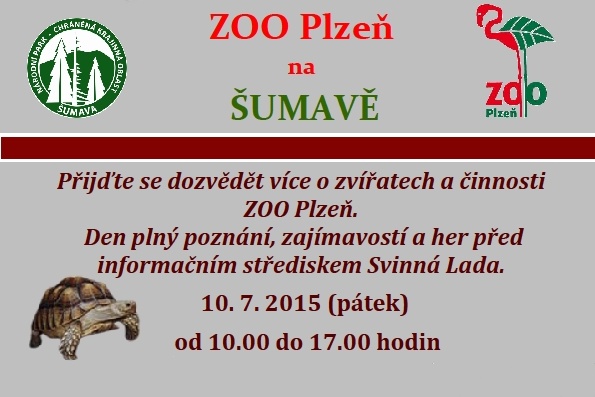 ZOO a BZ města Plzně a NP Šumava připravili pro své návštěvníky v roce 2015 novou společnou akci a sice představení jedné instituce návštěvníkům té druhé, pozvání z NP do zoo a naopak. První část projektu proběhne tento pátek 10.7. u IS Svinná Lada od 10 hod. Ze zoo dorazí kromě pracovníků zejména osvědčená propagační krajta královská, ale i obrázky a preparáty zvířat či časopisy a informační předměty.