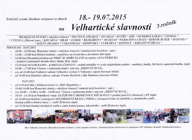 O tomto víkendu se mimo jiných AKCÍ koná velhartická pouť spojená se slavnostmi. A bude pěkně žhavá, protože meteorologové i na první víkendový den ponechali zatím v platnosti výstrahu před extrémně vysokými teplotami i nebezpečím požárů.