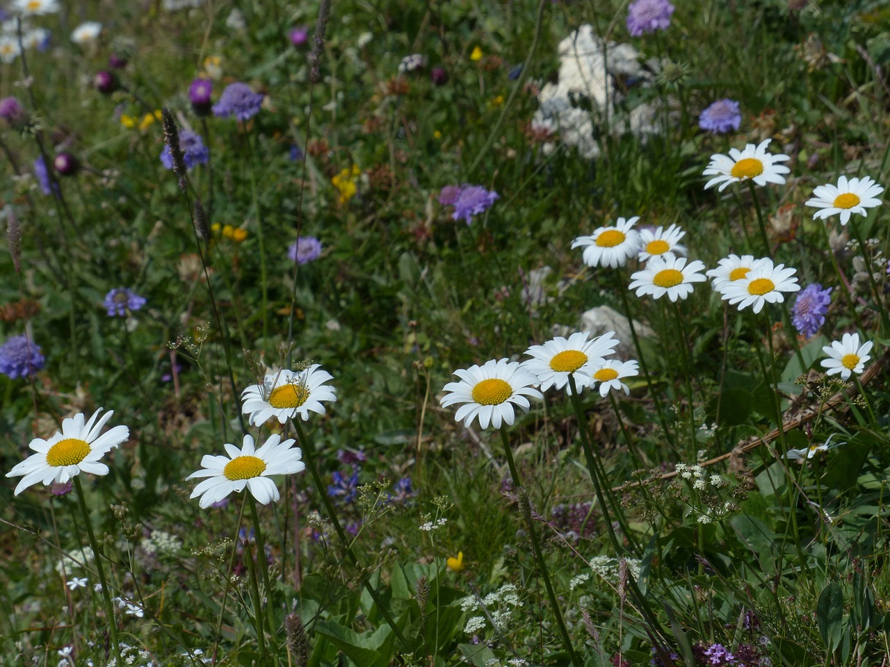 Mezi kvetoucími  rostlinami najdete: Centaurea cyanos (chrpa modrá), Linum grandiflorum (len velkokvětý), Escholtzia californica (sluncovka kalifornská), Cosmos bipinatus (krásenka zpeřená), Clarkia unguiculata (lokanka obecná), Calendula officinalis (měsíček lékařský), Leucanthemum vulgare (kopretina bílá) a další.
