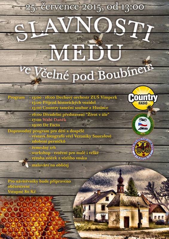 Tradiční Slavnosti medu ve Včelné pod Boubínem se konají již tuto sobotu 25.7.2015 od 13 hodin.