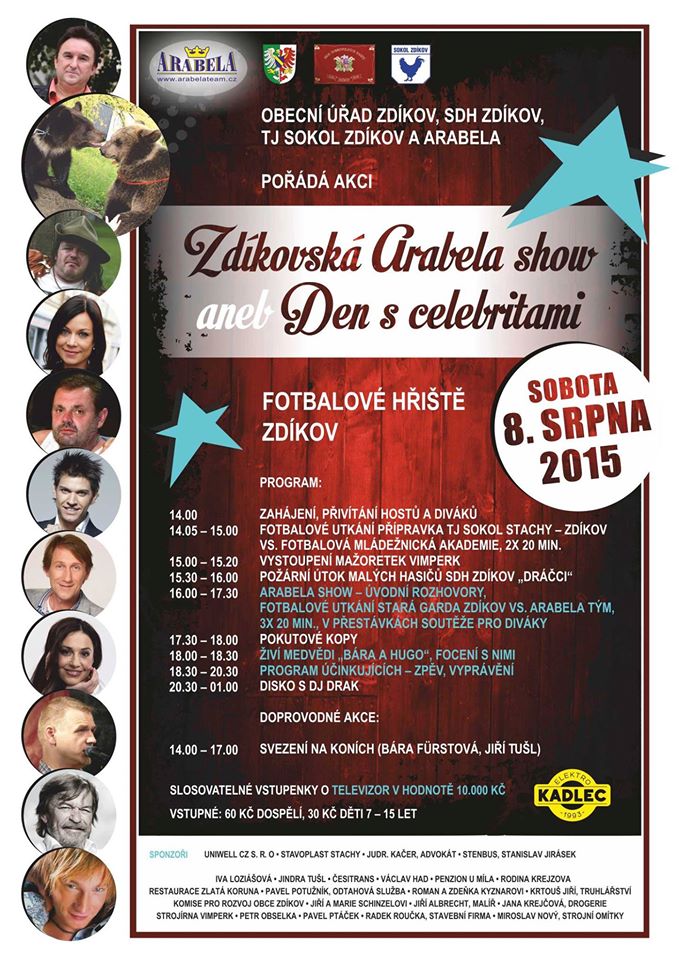 Diváci se mohou především těšit na netradiční fotbalové utkání. Arabelateam nehraje fotbal „naplno“, ale jde především o legraci, kde výsledek není vůbec podstatný. Cílem je přilákat kromě fotbalové veřejnosti co nejširší cílovou skupinu, čili od babiček až po vnoučky: navíc kromě fotbalu uvidí diváci všechny přítomné hráče Arabela teamu i v následném kulturním programu, kde předvedou své profesionální umění – písničky, vyprávění, fórky… Celý program trvá přibližně 5 hodin. Arabela show ve Zdíkově slibuje tedy odpoledne (i večer a pozdní hodiny) plné zábavy.