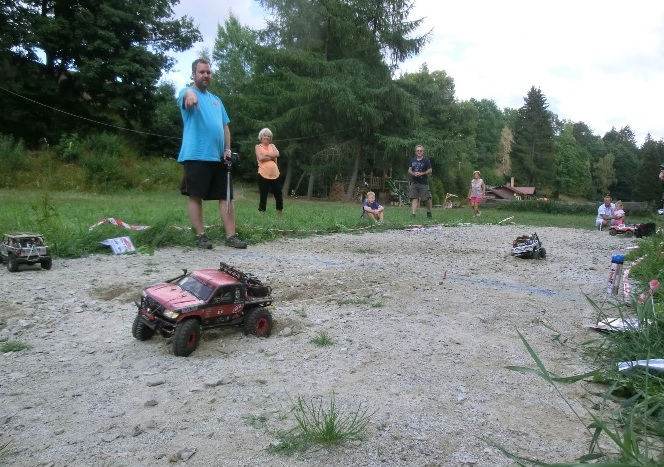 Závod probíhal do 19. hodiny. Mezitím se u hlavního tábora uspořádala pro otrlé jezdce soutěž v přetahované. Otrlé píši proto, že v této disciplíně se může stát s modelem cokoliv. Hrozí zničení elektroniky, strhnutí ozubených kol v převodovce, překroucení kardanů až po vytržení rámu. Pár nás bylo, včetně mě a bylo to velice zábavné. Někteří si kvůli adhezi nakládali model kameny, aby zvedli váhu a těžiště modelu, někteří byli připraveni olověným závažím, které stačilo za vozidlo jen zaháknout a to je stálo vítězstvím. Mě to stálo povolené čepy na poloosách a jeden stržený disk na unašeči, což mělo za následek, že jsem pár přetahovaných hrabal pouze dvěma koly na levé straně vozidla, ale po rychlé opravě jsem se dohrabal na třetí místo.