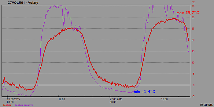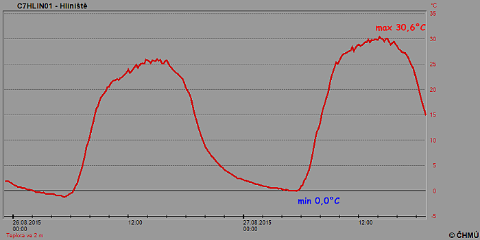 Ještě méně k tomuto ojedinělému jevu však chybělo nedaleké stanici Hliniště, kde ranní minimum kleslo na 0,0°C, k mrazu chyběla pouhá desetina stupně. Přes den se vyšplhala teplota na tropických 30,6°C.