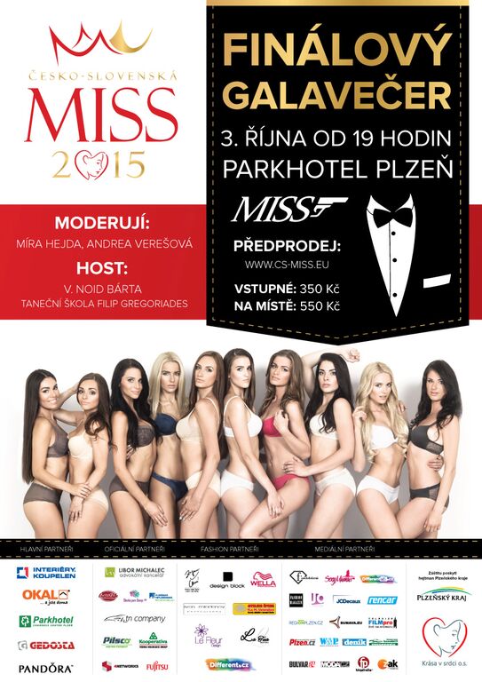 Večer se ponese v tématu Jamese Bonda, provedou jím Česko-Slovenská dvojice ANDREA VEREŠOVÁ a MÍRA HEJDA. Finalistky se představí ve čtyřech soutěžních disciplínách, převléknou několikery šaty z dílny Zuzany Lešák-Černé, předvedou značky Desigual a Victoria’s Secret a nebudou chybět volné disciplíny.