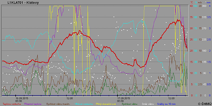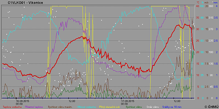 Od západu se v podvečerních hodinách prudce ochlazuje, což dokumentují grafy z meteostanic sítě ČHMÚ Klatovy či Vlkonice: