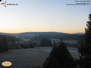 Studené severovýchodní proudění, jasná noc a bezvětří způsobily, že teploty ve všech šumavských polohách klesly pod bod mrazu. Poprvé spadla teplota na dvou šumavských stanicích