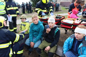 Z hořícího hradu Kašperk muselo být včera odpoledne evakuováno devět dětí a dvě dospělé osoby. V prostorách východní věže vypukl požár, skupina zůstala odříznuta od