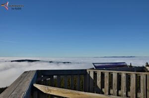 V úterý 27. října zakryla Šumavu nízká inverzní oblačnost. Ze satelitního snímku bylo dobře patrné, že z nízké oblačnosti vystupují jen nejvyšší vrcholky, což dobře
