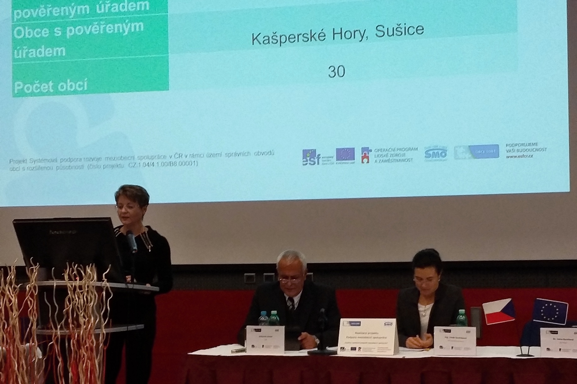 Závěrečné setkání zástupců smluvních partnerů Projektu systémové podpory rozvoje meziobecní spolupráce v rámci území správních obvodů obcí s rozšířenou působností, se konalo v úterý 27. října v Praze. Více než stovka přítomných vyslechla shrnutí výsledků projektu v hlavních oblastech (předškolní a základní vzdělávání, sociální péče, odpadové hospodářství) a u volitelných témat, která v rámci celého projektu zpracovávaly v jednotlivých územích realizační týmy.