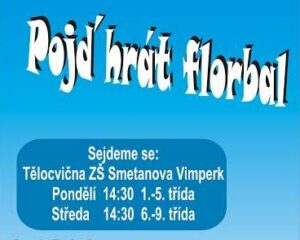 Ahoj holky a kluci přijďte si s námi zahrát florbal. Nový sport v našem městě si můžete s námi zahrát v pondělí první stupeň a ve středu