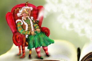 Možná trošičku páchne sírou, možná je trochu umolousaná a ze zapálené fajfky jí na sukni odletují jiskřičky, ALE UMÍ BÁJEČNĚ VYPRÁVĚT A ČÍST. Kdo? No