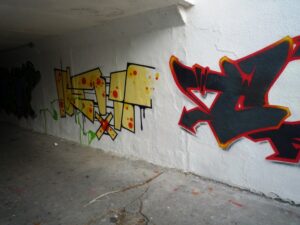 Podivné umění Pozorní pozorovatelé sídliště si všimli, že podchod byl nově vymalován a očištěn. Jejich radost trvala jen několik dní. Podchod byl opět vyzdoben