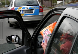 Při dopravně bezpečnostní akci řidiči převzali od policistů reflexní vestu, určenou pro spolujezdce.