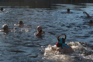 Vzduch 8°C, voda o trochu méně – ideální stav pro sušické otužilce, kteří se letos už potřetí vnořili do Otavy při Štědrodenním koupání. Za vydatné