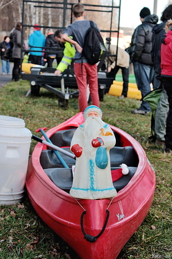 45 evidovaných a 2 kajaky nečíslované – tolik lodí se vyalo na Otavu v sobotu dopoledne, aby dodrželo tradici vánočního splouvání řeky, které před šesti lety, tehdy opravdu v mrazu a ledu, začalo ve skromném počtu.
