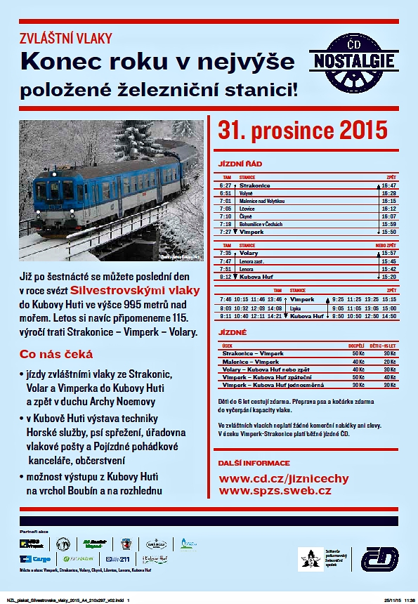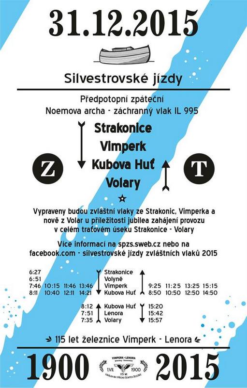 Již pošestnácté budou vypraveny zvláštní silvestrovské vlaky Českých drah a Stifterova pošumavského železničního spolku Vimperk, plné veselí, zábavy, recese a dobré nálady, pro všechny příznivce železnice a Šumavy.