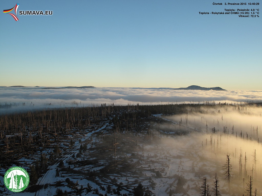 Prosinec přinesl rekordně teplé a suché počasí. Sněhová pokrývka díky teplému proudění roztála ve všech nadmořských výškách na Šumavě. Až samý závěr roku přinesl teploty odpovídající prosinci.