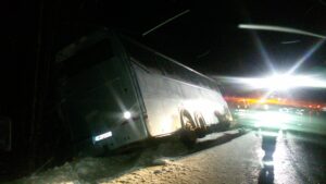 Na páteční večer nebude dobře vzpomínat osazenstvo řeckého autobusu pohybujícího se po Šumavě. Poblíž Lenory šofér nezvládl na zasněžené vozovce řízení a vyjel mimo silnici.