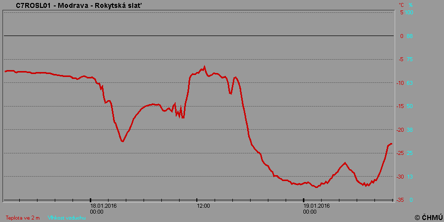 Teplotní graf stanice Rokytská slať s minimem -32,3°C: