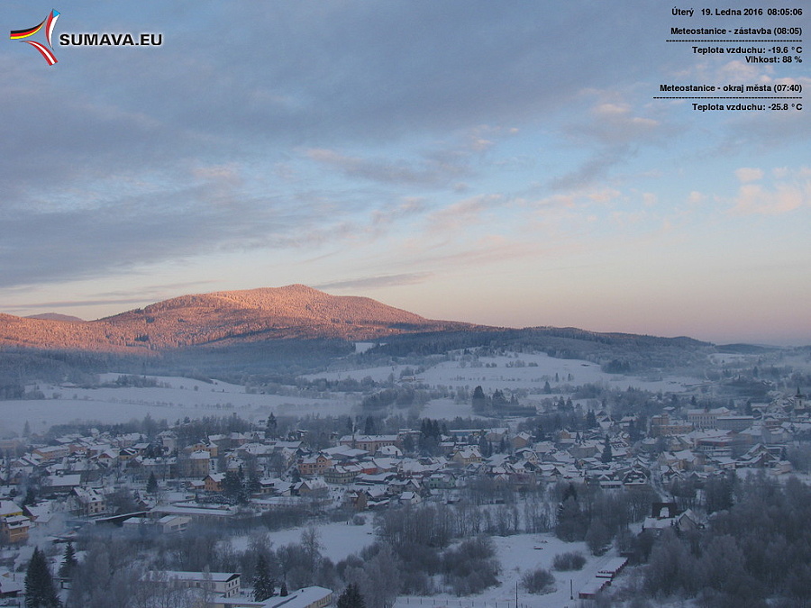 Teploty spadly v noci na 19. ledna hluboko pod bod mrazu. Ráno jsme se tak probudili do nejchladnějšího ráno od února 2012. Nejnižší teplotu nejen na Šumavě, ale z celé republiky zaznamenala Rokytská slať, kde teplota spadla až na -32,3°C. Pod hranici -30°C se dostala ještě stanice Březník s minimem -30,3°C a rovných 30,0°C zaznamenala stanice Pohoří v Novohradských horách.