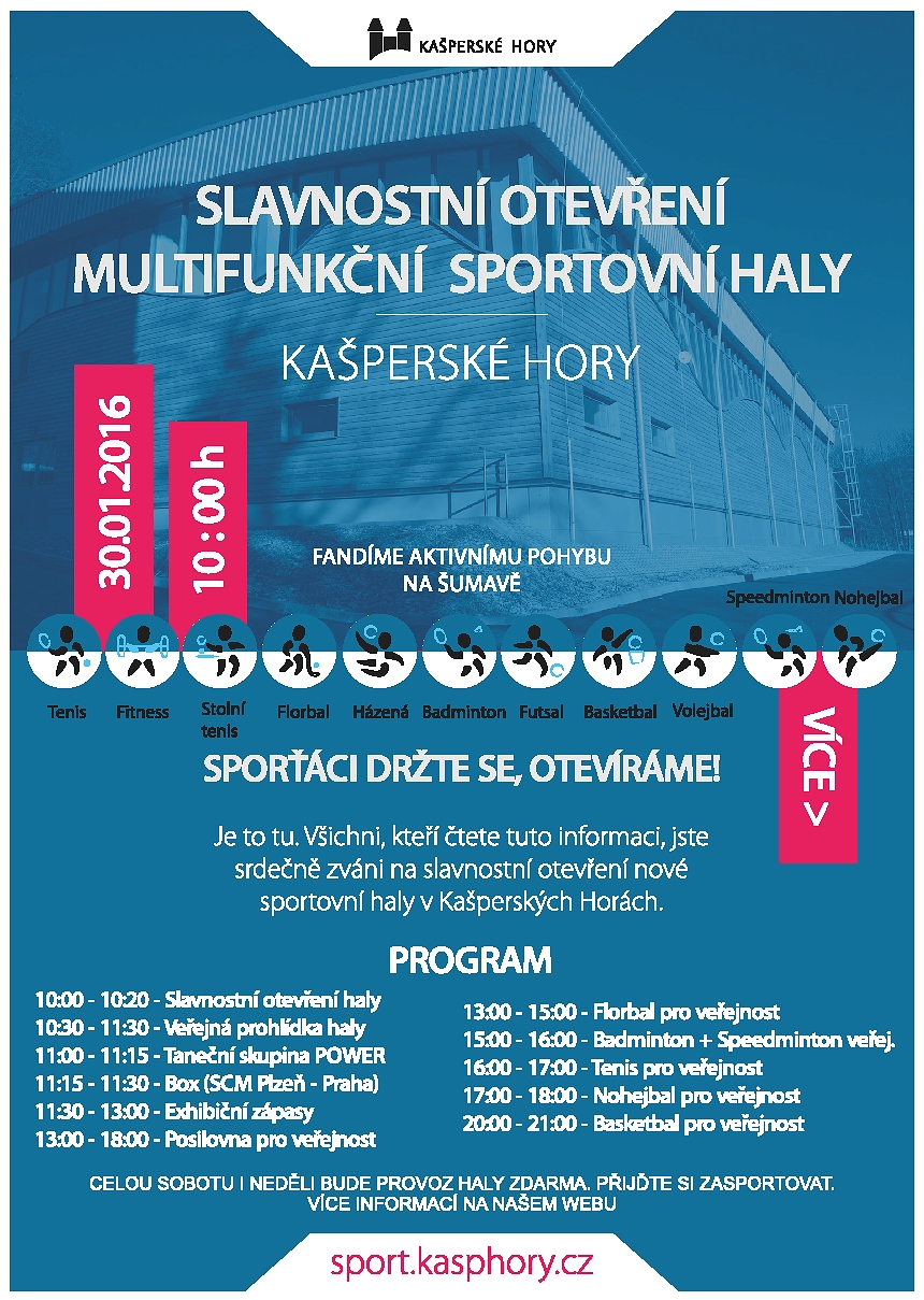 Badminton, tenis, nohejbal, florbal, speedminton, futsal, házená, stolní tenis, volejbal, fitness aktivity. To vše mohou od dnešního dne provozovat návštěvníci nové moderní sportovní haly, která vyrostla v Kašperských Horách.