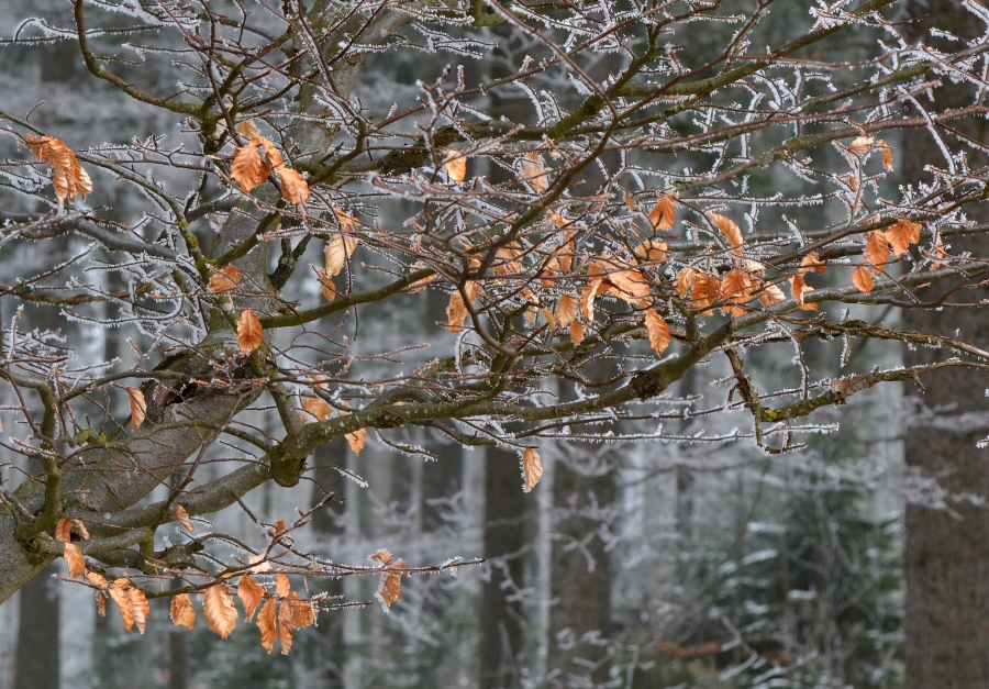 Historií se pak podle všeho stanou i tyto mrazivé scenérie v podboubínských bučinách, neboť i tam se teplota, třebaže mírněji, drží za současné vlezlé mlhy nad bodem mrazu. Uvidíme tedy, bude-li podle lidové pranostiky březen v rámci posledních tří týdnů kalendářní zimy opravdu stavět sněhuláky … 🙂