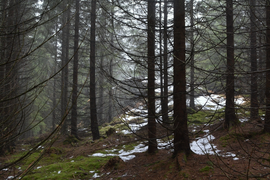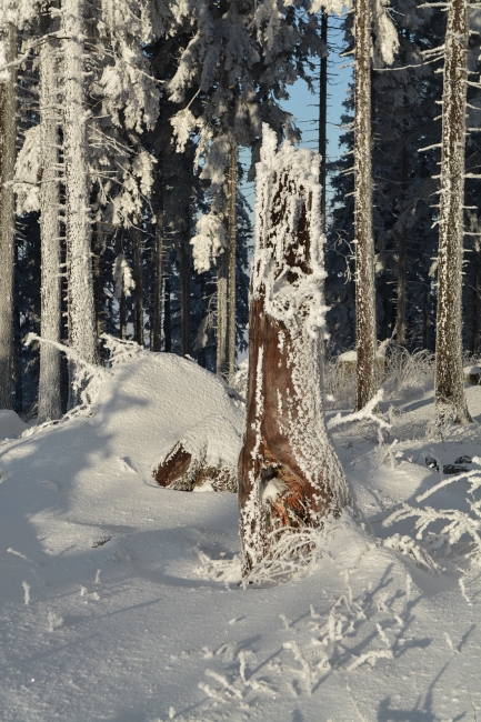 … s ubývající výškou vyklízejících čím dál více prostor barvám mechových koberců a lesní půdy. Pro všechny, kdož se sem chtějí vypravit, je však namístě výzva k značné obezřetnosti, neboť sněhový povrch je vlivem střídavého odtávání a přimrzání místy velmi zrádný k chůzi, a to i tam, kde navenek působí zcela nevinným dojmem.