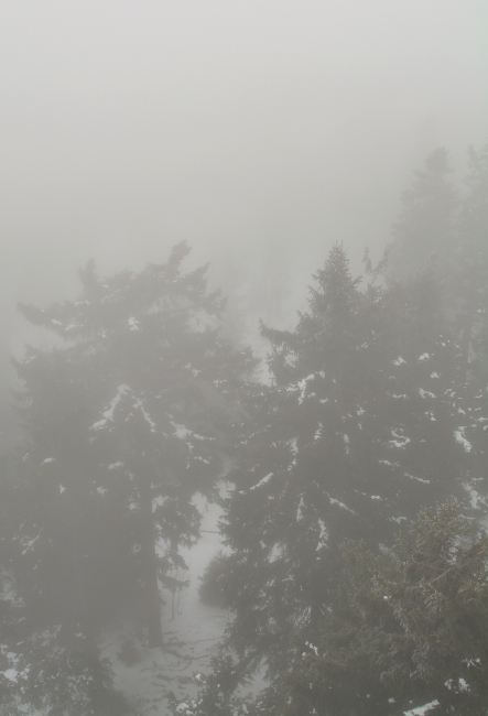 Poslední únorová neděle zastihla Vimperk kompletně utopený v mlze za současného neustálého drobného mrholení. Bylo tím pádem zapotřebí prověřit míru pravděpodobnosti možné změny na Boubíně, jehož vrchol za popsané situace často nabídne příjemné slunečno.