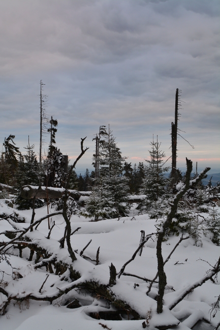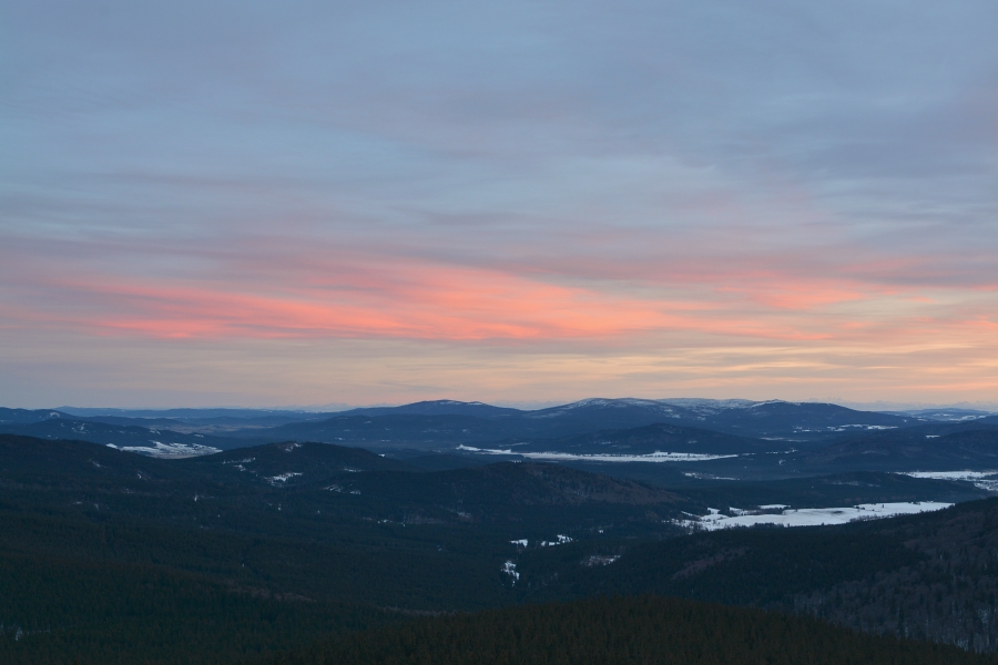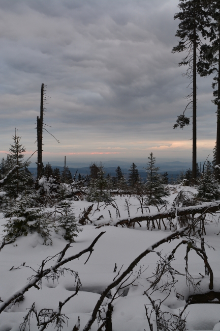 Máme se nač těšit, a to v obou směrech. Pokračovat totiž bude nepochybně i sněžení a je jen otázkou, jakou trvanlivost jeho výsledkům přiřkne panující teplota. Aspoň na boubínském vrcholu momentální dva až tři čerstvě napadlé centimetry ve spolupráci s minule vzpomenutými starými ztvrdlými ostrůvky poměrně úspěšně navozují iluzi nové souvislé bílé plochy. Vyčkávejme tedy dalšího vývoje.