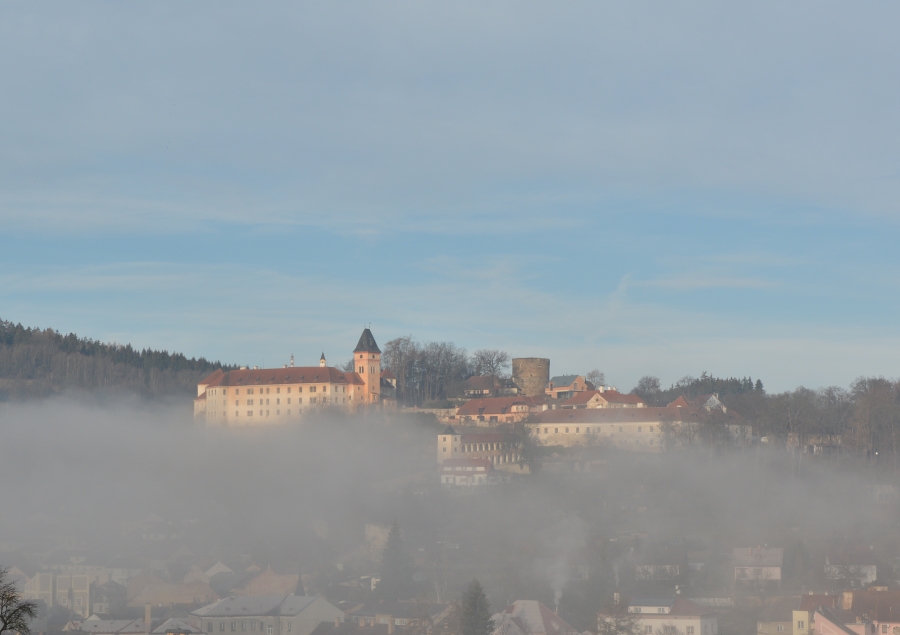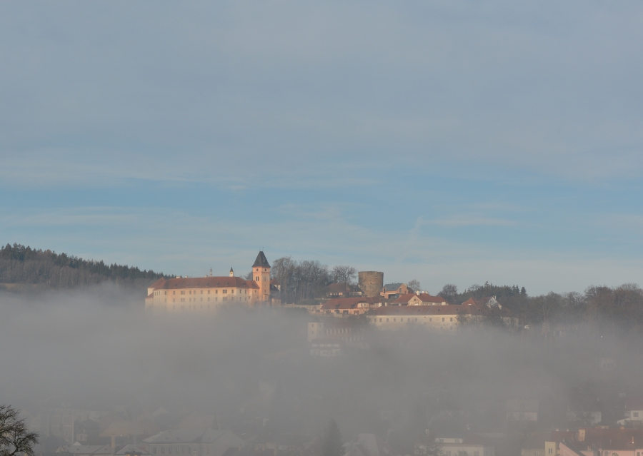… stejně jako později z věže, kolem níž se stejně jako předešlého dne prohánějí neprůhledné chuchvalce orografické oblačnosti.