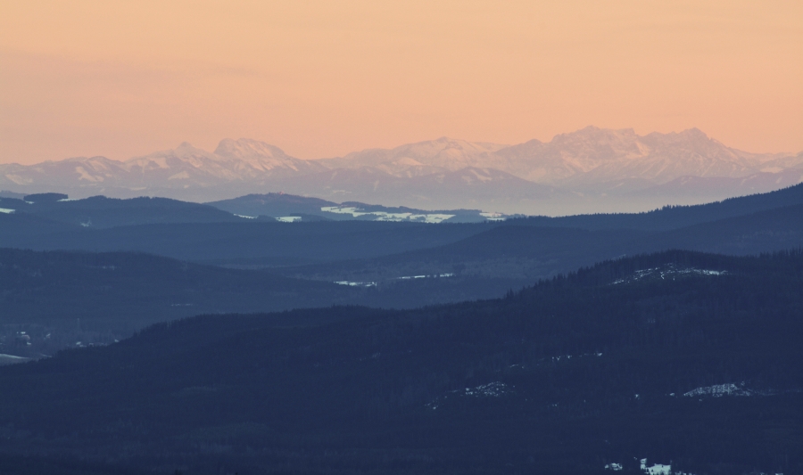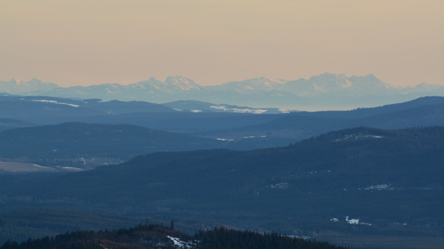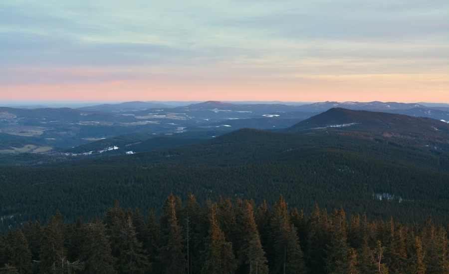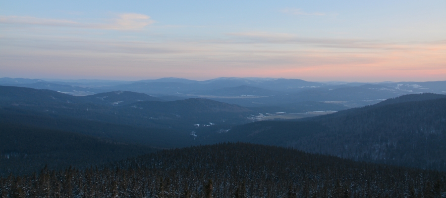 … a svobodu volného nádechu ponechává jen nejvýraznějším dominantám, jako např. zde Trojmezenské hornatině.