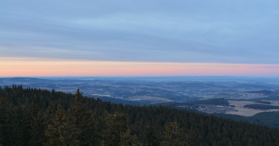 … poblíž rozhledny zvolna přetéká nižší vrcholy …