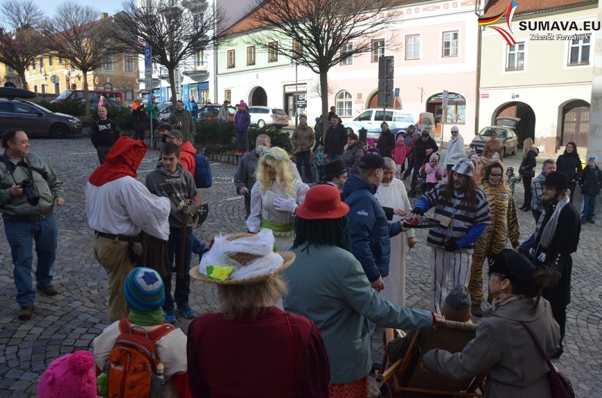 Součástí dnešních oslav masopustu je především právě tradiční průvod masek, při kterém, ač prostý jiných zvyků, bývá pořádně veselo – stejně jako dnes ve Vimperku, kde masopust probíhal pod režijní taktovkou divadelního spolku Artego, SHŠ Bouček a Šísl bandu. ‚Neunikl‘ žádný kolemjdoucí, o drobné příspěvky na masopustní večerní veselici nouze nebyla.