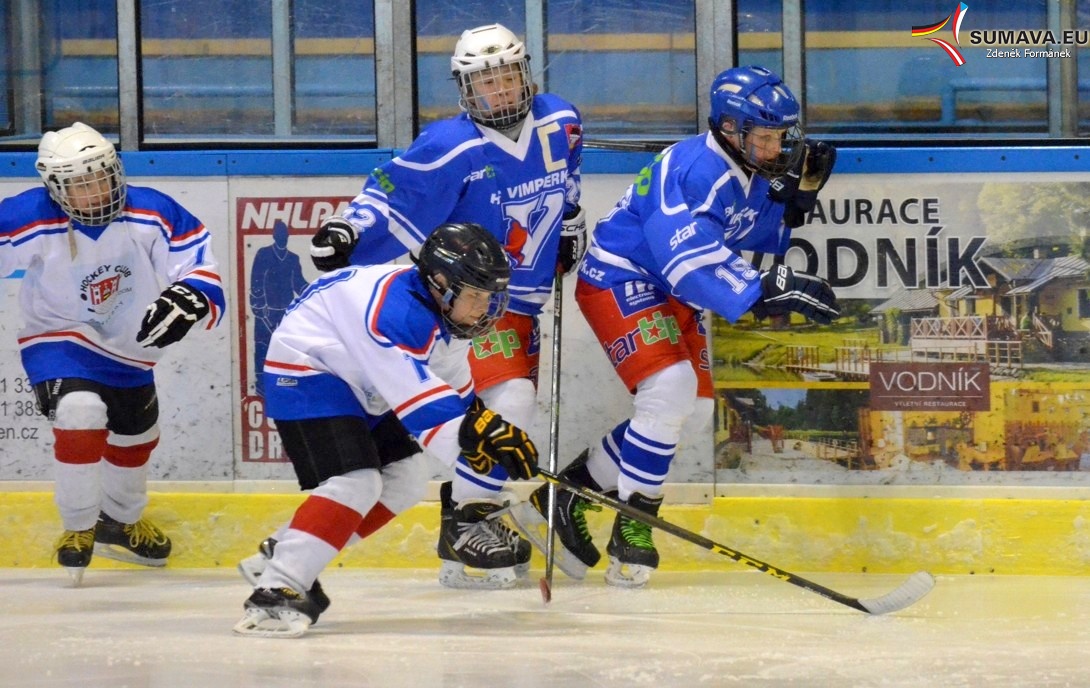 VIMPERŠTÍ MLADŠÍ ŽÁCI HC VIMPERK V PŘEDEHRÁVCE PORAZILI TÁBORSKÉ BÉČKO