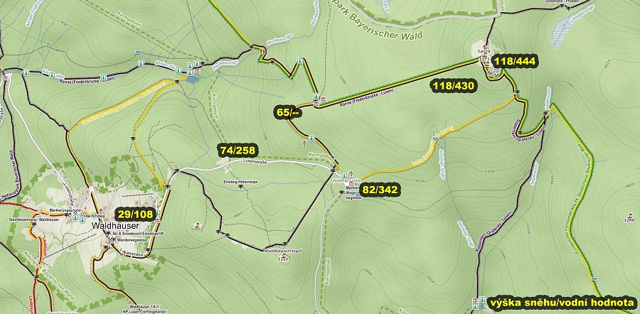 | Lusen – u Archy | 1160 | 65 | neměřeno | neměřeno | 17.3.2016 | ||