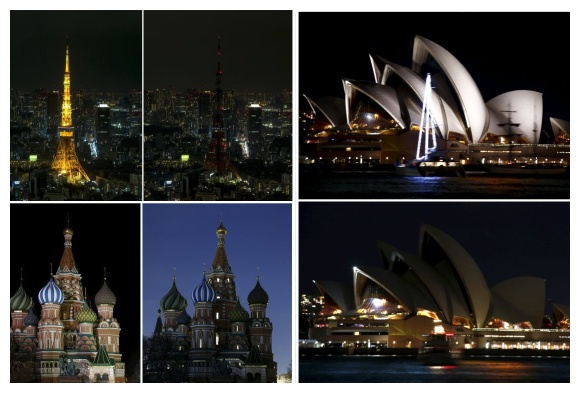 Zhruba 400 světových památek a význačných budov se v sobotu večer na hodinu ponořilo do tmy. U příležitosti celosvětové akce Hodina Země zhasla světla mimo jiné na Eiffelově věži v Paříži, na mrakodrapu Empire State Building v New Yorku nebo v ruském Kremlu. K akci se připojila i Česká republika.