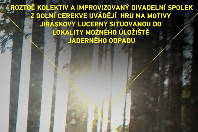 Divadelní hra A. Jiráska Lucerna posloužila scénáristovi a textařovi písní Pavlovi Kovářovi jako předloha k napsání této úložišťové satiry. Děj se hemží milostnými zápletkami a přímými i nepřímými iluzemi na „radioaktivní“ aktéry známé z médií. Sám scénárista si vystřihne postavičku bělovlasého odborníka na ukládání jaderného odpadu, ve hře zvaného jako ředitele Českých energetických tunelů (ČET), v doprovodu sexy mluvčí. Petr Kovář se svými svalnatými lýtky se perfektně vžije do role ředitelky Státního úřadu pro jaderné zamoření (SÚJZ). Jeho hereckým partnerem je Filip Vláčil v roli starosty, který se ředitelce SÚJZ Drábíkové upsal ke spolupráci, ale teď se z ní snaží vycouvat. Manželky obou herců si zahrály role aktivistek Lidušky (Iva Vláčilová) a Haničky, co se „tak ráda poutá“ (Marta Kovářová). A společně s aktivistkou spolku 2. Alternativa Alenou Slavingerovou (v roli aktivistky Marušky) brání umělecky i herecky úžasně ztvárněnou lípu (Anežka Vláčilová) a krásnou přírodu Pačejovska, aby pod ní neskončil jaderný odpad. V tom jim také rafinovaně pomáhají elementy ohně (hraje Otakar Doležal), vody (Monika Vacková) a větru (Petra Konířová). Také vodník (Vlaďka Svobodová) – pomáhá nápovědou. A taky pomáhá někdo, od koho byste to v žádném případě nečekali. I samotnou jadrnou Drábíkovou totiž rozněžní skvosty zdejší přírody.