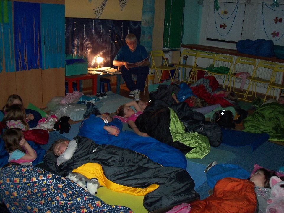 Pak už jen zbývalo naplnit bříška, nebojácně najít správnou cestu tajuplnými nočními chodbami Lerchohradu podle světélek svíček, nevylekat se skrytých strašáků, slupnout žabáka a po důkladném vydrhnutí zoubků ulehnout do spacáků k dalšímu čtení a spaní.