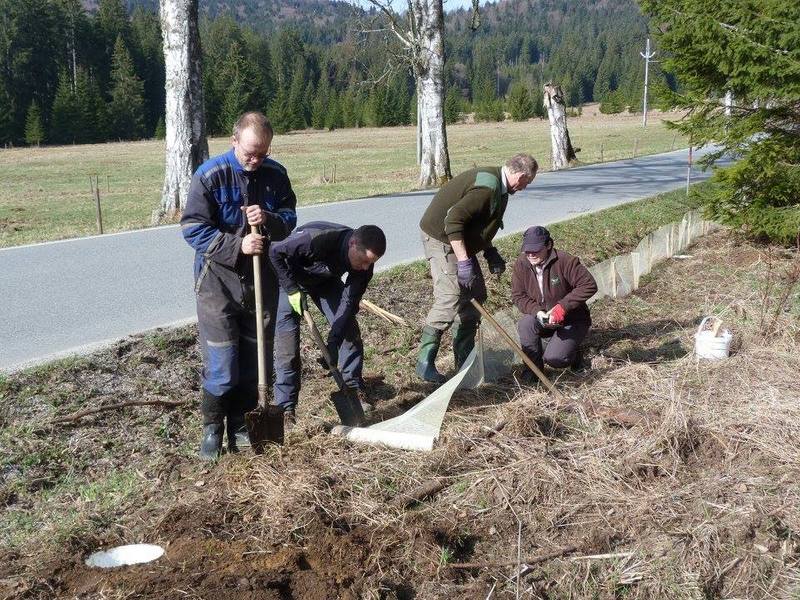Na Stožecku lidé ze Stožce a zaměstnanci NP Šumava už druhým rokem takto pomáhají především ropuchám obecným, ale i čolkům horským nebo ještěrkám živorodým.