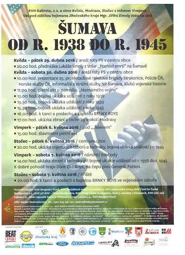 Uctěním památky obětí druhé světové války si město Vimperk v pátek 6. května v 15.00 hodin na náměstíčku „U Jelena“ slavnostně připomene osvobození americkou armádou. Oslavy budou pokračovat v sobotu 7. května ve 14.00 hodin na náměstí Svobody ukázkou zbraní a techniky při bojových akcích. K dobré pohodě zahrají Dixie Old Boys a čepovat se bude speciální pivo Generál Patton. Jste srdečně zváni.