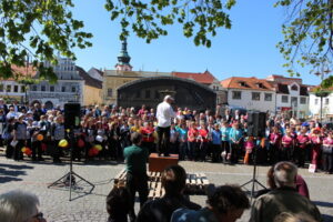 Moderátorem rozezpívaného dopoledne na sušickém náměstí byl Jiří Hlaváček 11. setkání pěveckých sborů z Plzeňského a Karlovarského kraje si objednalo prostřednictvím letošních pořadatelů –