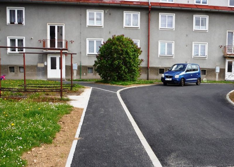 Před bytovkou v Boubínské ulici jsou opraveny komunikace